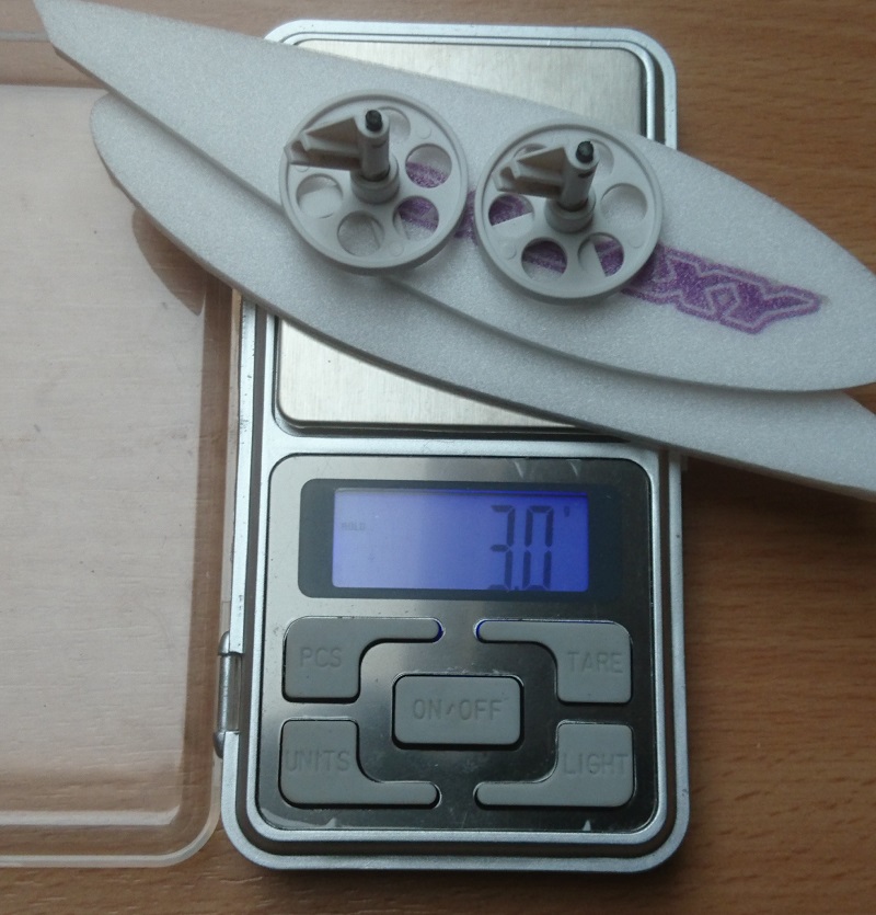 Wszystkie elementy z depronu maja masę 54,3 g.